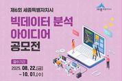 코리아타임뉴스 세종취재분부 | 세종특별자치시가 시민의 창의적인 아이디어로 도시 문제를 해결하고 빅데이터 활용을 활성화하기 위해 ‘제6회 빅데이터 분석 아이디어 공모전’을 개최한다. 이번 공모전은 22일부터 오는 10월 1일까지 전 국민 누구나 개인 또는 4인 이하 팀으로 참여할 수 있다. 특히 올해는 공모분야를 자유주제와 함께 세종시 5대 비전 중 하나인 한글문화도시와 관련된 정책 아이디어를 제시하는 지정주제를 신설했다. 공모 참여자들은 데이터를 활용해 주제와 관련된 세종시 현안 해결 방안을 제안하거나 기존 정책에 대한 개선 아이디어 등을 자유롭게 제시하면 된다. 시는 오는 10월 중 예비서면심사를 통해 상위 8개 작품을 선정하고 공개 검증을 거쳐 11월 중 최종발표심사를 진행할 계획이다. 심사 결과 대상 1명, 최우수상 1명, 우수상 2명, 특별상 2명 등 총 6명(팀)을 선정해 상장과 함께 총 650만 원의 상금을 수여한다. 공모 신청은 세종시 빅데이터 대시민 개방형 플랫폼에서 가능하다. 천흥빈 교통국장은 “공모전을 통해 발굴된 참신한 아이디어를 내년도 빅데