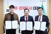 코리아타임뉴스 오영주 기자 | 대전시는 28일 대전관광공사, 티엔알컴퍼니(주)와 함께 꿈돌이 누룽지 출시를 위한 공동브랜딩 업무협약을 체결했다. 이번 협약은 도시브랜드 IP(꿈씨패밀리)를 일상 식문화와 접목해 기념·선물형 간식을 개발·유통하고, 관광 소비 촉진과 지역 상권 활성화, 로컬기업과의 상생 생태계를 조성하기 위한 것이다. 이번에 출시되는 ‘꿈돌이 누룽지’는 일상 식품인 누룽지의 담백한 맛과 바삭한 식감을 살리면서, 꿈씨패밀리 세계관과 ‘꿈돌이’ 캐릭터를 담은 박스 패키지로 수집·선물 가치를 높인 것이 특징이다. 편식공장은 대전 동구에 기반을 둔 전통과자 전문 브랜드로, 쫀드기·꽈배기·곡물과자 등 ‘옛 간식’ 라인업을 현대적으로 재해석해 온 곳이다. 공식 채널을 통해 보리·쑥 등 우리 곡물 기반의 제품을 선보이며, 간결한 성분과 일상 간식에 어울리는 부담 없는 용량·구성으로 호응을 얻고 있다. 이장우 대전시장은 “누룽지처럼 누구나 즐기는 일상 먹거리에 지역 캐릭터와 로컬기업의 정성을 더해, 관광과 상권, 일자리를 함께 키우는 선순환이 만들어지길 기대한다”라며 “대전의 로컬브랜딩을 한 단계 끌