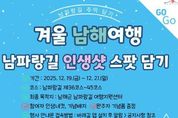 코리아타임뉴스 오영주 기자 | 아름다운 쪽빛 바다가 펼쳐진 남해의 겨울을 온전히 느낄 수 있는 특별한 걷기 행사가 오는 12월 19일부터 21일까지 3일간 남파랑길 코스 및 남파랑여행지원센터에서 열린다. 남해군 관광진흥과는 코리아둘레길 중 남해 구간에 해당하는 ‘남파랑길’의 매력을 알리고, 연말을 맞아 남해를 찾은 가족, 연인, 친구 단위 관광객들에게 잊지 못할 추억을 선사하기 위해 이번 행사를 기획했다. 행사 코스는 남해의 비경을 간직한 남파랑길 제36코스부터 제45코스까지다. 참여를 원하는 관광객은 스마트폰에 ‘남해바래길’ 앱을 설치한 뒤 원하는 코스를 선택하고, ‘따라가기’ 기능을 활성화하여 걸으면 된다. 참가자들은 각 코스를 걸은 후 최종 목적지인 남파랑길여행지원센터(이동면 성남로 97)에 도착하여 걷기 기록을 인증하면 다양한 혜택을 받을 수 있다. 남해군은 참여 열기를 높이기 위해 풍성한 기념품을 마련했다. 단순 걷기 참여자(선착순 200명)에게는 기념 배지를, 5km 이상 구간을 걸은 참여자(선착순 100명)에게는 소정의 기념품을 증정한다. 특히 해