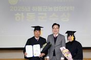 코리아타임뉴스 오영주 기자 | 하동군은 지난 3일 오후 14시, 농산물가공지원센터 강당에서 ‘2025년도 제18회 하동군농업인대학 스마트농업 과정 졸업식’을 개최했다고 밝혔다. 이날 행사에는 졸업생 22명을 비롯한 하승철 군수, 강대선 군의회 의장, 군의원, 농업인 단체장, 졸업생 가족 등 40여 명이 참석해 지난 6개월간의 스마트농업 과정(84시간)을 마무리하고 새로운 출발을 함께 축하했다. 올해 학생회장을 역임한 김미진(47‧옥종면) 씨가 공로상(군수)을 수상했으며, 수업에 모두 출석한 홍이표(63·북천면) 씨가 개근상(군수)을 받았다. 또한 학사 운영에 솔선수범하고 봉사 정신을 보여준 정규식(45‧옥종면) 씨가 모범상(군의회 의장)을, 타 교육생을 위해 헌신 노력한 하준식(37·하동읍) 씨가 공로상(농촌진흥청장)을 각각 수상했다. 스마트농업 과정은 정보통신기술(ICT)를 활용한 농업환경 제어, 시설 장비 교육, 스마트팜 모듈 실습 등 현장 중심 교육으로 운영됐다. 스마트농업의 이해에서부터 비즈니스모델 아이디어 도출에 이르기까지 체계적으로 교육과정을 이수했으며, 이를 통해 농업인들은 데이터 기반