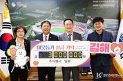 코리아타임뉴스 오영주 기자 | 김해시는 27일 김해지역 건설업체인 ㈜일광(대표 박현길)에서 성금 300만원을 기탁했다고 밝혔다. 후원금은 장애인 근로자의 자립의지와 사회참여를 응원하기 위한 것으로 김해시장애인직업재활시설협회에서 주관하는 장애인근로자 노래자랑 운영 지원을 위해 쓰이게 된다. 장애인이 자신의 능력과 적성에 맞는 직업생활을 통해 자활 및 자립을 돕는 사회복지시설인 장애인직업재활시설에서는 장애인들의 사기함양 및 여가활동을 위해 장애인근로자 노래자랑 행사를 개최해왔다. ㈜일광은 금속창호․지붕건축물 조립공사 등 건설업을 하는 한림면 소재 중소기업으로 지난해에 이어 올해도 같은 사업에 성금을 기탁하며 지속적인 사회공헌 활동을 이어가고 있다. 박현길 대표이사는 “지역의 장애인 근로자분들이 즐겁게 화합하고 자신감을 얻는 자리가 되기를 바라는 마음으로 성금을 전달했다”며 앞으도로 지역사회와 함께하는 기업으로 책임을 다하겠다“고 말했다. 홍태용 시장은 “(주)일광의 따뜻한 나눔이 장애인 근로자들에게 큰 힘이 될 것”이라며 “소중한 성금은 사회복지시설에 잘 전달하고 앞으로도 지속적인 관심과