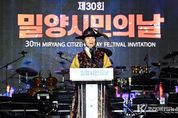 코리아타임뉴스 오영주 기자 | 경남 밀양시는 삼문동 야외공연장 일원에서 시민과 방문객 등 10,000여 명이 참석한 가운데 제30회 밀양 시민의 날 기념식 및 시민 한마당 축제를 성황리에 마무리했다고 18일 밝혔다. 이번 행사는 국제와이즈멘 밀양클럽이 주관해 읍·면·동 거리 퍼레이드를 시작으로 기념식, 시민 한마당 축제, 열린음악회, 불꽃놀이까지 다채로운 프로그램이 이어지며 시민의 자긍심과 화합을 다지는 축제의 장이 됐다. 기념식은 미래 세대의 주역인 밀양 청소년을 대표해 밀성고등학교 박해수·황윤준 학생의 시민헌장 낭독으로 시작됐으며, 제27회 밀양 시민대상은 문화 부문 김은민 극단메들리 대표, 산업 부문 조문수 한국카본 대표이사, 봉사 부문 손흥상 해심장학재단 이사장이 수상의 영예를 안았다. 또한 시군 통합 및 지방자치 30주년 기념 퍼포먼스를 통해 지난 30년간 밀양의 발전 여정을 되돌아보고, 눈부신 성장과 변화를 시민 모두가 함께 축하하는 뜻깊은 시간을 가졌다. 이후 열린 시민 한마당 축제에서는 국내 최고 수준의 밀양아리랑오케스트라의 연주와 가수 이기찬, 소프라노 심규연의 무대가 이어져 감동과