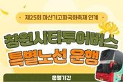 코리아타임뉴스 오영주 기자 | 창원특례시는 오는 11월 1일부터 9일까지 열리는 제25회 마산가고파국화축제에 맞춰, 축제장을 중심으로 한 ‘창원시티투어버스 특별노선’을 한정 운영한다. 이번 특별노선은 기존 순환노선 정류장에서 벗어나 ▲마산역 ▲마산어시장 ▲ 3·15해양누리공원(축제장) ▲마산해양드라마세트장 ▲ 저도 콰이강의 다리를 순환하는 코스로, 축제 관람과 함께 마산 지역의 주요 관광지를 한 번에 둘러볼 수 있도록 구성됐다. 특히 3·15해양누리공원에서는 약 2시간의 체류시간을 제공해 국화 전시와 공연·체험 프로그램을 여유롭게 즐길 수 있도록 했다. 그 외 정차지에서도 1시간가량 머물며 관광과 지역 상권이 함께 활기를 띨 수 있도록 구성했다. 시는 이번 특별노선을 통해 대중교통으로 접근하기 어려운 관광지의 접근성을 개선하고, 축제장과 주변 상권의 방문을 유도하여 지역경제에 활력을 불어넣을 계획이며, 현장 매표와 온라인 예약을 병행 운영해 관광객이 보다 편리하게 이용할 수 있도록 했다. 정양숙 문화관광체육국장은 “국화축제는 매년 수많은 관광객이 찾는 창원의 대표 가을 축제”라며, “