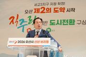 코리아타임뉴스 윤광희 기자 | 오산시가 7일, 세교3신도시 지구지정을 계기로 한 향후 시정 운영 방향과 인구 50만 경제자족도시로 도약하기 위한 중장기 도시 비전을 제시했다. 이권재 오산시장은 이번 발표에서 세교3신도시를 주거 공급에 그치지 않고, 도시 기능과 성장 방향을 함께 고려해 추진하겠다는 구상을 밝혔다. 세교3신도시는 총 131만 평 규모로 3만3천 호의 주택 공급이 예정돼 있으며, 인구 50만 시대를 대비해 단계적으로 조성될 계획이다. 현재 세교3신도시에 반영된 경제자족용지는 9만3천 평 규모로, 오산시는 관계기관과의 협의를 통해 경제자족용지 확대를 추진할 방침이다. 아울러 첨단 테크노밸리와 게임 콘텐츠 산업 클러스터 조성을 통해 AI·반도체·게임 산업이 결합된 경기 남부권 산업 거점 도시로의 성장을 도모한다는 계획이다. 이 시장은 이와 관련해 “세교3신도시는 주거를 늘리는 사업이 아니라, 오산의 미래를 설계하는 사업”이라며 “기업이 오고, 일자리가 생기고, 시민의 삶으로 이어지는 구조를 만드는 것이 목표”라고 말했다. 교통 인프라 구축도 세교3신도시 추진의 주요 과제로 제시됐다. 오산시