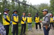 코리아타임뉴스 윤광희 기자 | 파주도시관광공사는 지난 26일, 파주시 관내 사과 과수원을 찾아 수확기 일손 부족으로 어려움을 겪는 농가를 위해 봉사활동을 실시했다. 이번 활동은 파주시자원봉사센터의 ‘천하무적 직장인 봉사단’ 사업 일환으로, 지난 민북 지역 농촌마을 환경정화 활동에 이어 두 번째 농촌 지원 활동을 진행했다. 이날 공사 직원 10여명이 과수원에 방문해, 사과가 원활히 익을 수 있도록 사과나무 가지와 잎을 정리하는 등 농가의 일손 부족 문제를 해소하는 데 직접적인 도움을 제공했다. 이날 참여한 직원은 “짧은 시간이었지만 농민분들의 걱정을 조금이나마 덜어드릴 수 있어 보람된 시간이었다”라고 소감을 밝혔다.