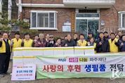 코리아타임뉴스 윤광희 기자 | 파주시 금촌3동은 국제라이온스협회 354-에이치(H) 지구 소속인 파주임진강라이온스클럽이 2026년 설 명절을 앞두고 지난 4일 금촌3동 행정복지센터를 방문해 지역 내 저소득층 가정을 돕기 위해 총 180만 원 상당의 생필품을 기탁했다고 밝혔다. 이날 전달된 물품은 라면 150상자(총 3,000개)와 화장지 13상자(총 52개)로, 관내 저소득층 가정에 전달될 예정이다. 2000년 설립되어 올해로 창립 26주년을 맞이한 파주임진강라이온스클럽은 현재 37명의 회원이 활동하고 있으며, ▲세계 인류 상호 이해 증진 ▲건전한 국가관 고취 ▲지역사회 복지 증진 등을 목표로 매년 다양한 봉사와 나눔 활동을 이어오고 있다. 반민영 파주임진강라이온스클럽 회장은 “설 명절을 앞두고 지역사회 이웃들이 일상생활에 꼭 필요한 물품을 사용하며 조금이나마 경제적 부담을 덜 수 있기를 바라는 마음으로 준비했다”라며 “앞으로도 라이온스의 봉사 정신을 바탕으로 지역사회와 함께하는 나눔 활동을 지속적으로 전개하겠다”라고 밝혔다. 이에 전종고 금촌3동장은 경기 침체 등 기부 여건이 어려웠음에도 불구하고
