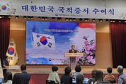 코리아타임뉴스 윤광희 기자 | 법무부 양주출입국·외국인사무소는 2025. 9. 25. 관내‘경기섬유지원센터 컨벤션홀’에서 양주시 등 경기 북부지역에 거주하고 있는 귀화자 및 국적회복자 57명을 대상으로 국적증서 수여식을 개최했다. 2018. 12. 20. 국적법 개정에 따라 법무부장관 앞에서 하던 국민선서와 국적증서 수여는 귀화자 및 국적회복자 거주 지역별 출입국·외국인관서에서 시행하고 있다 이번 국적증서 수여식은 대한민국 국민이 되어 첫 번째로 맞이하게 될 ‘추석’ 민속명절의 의미를 되새기고, 한국 사회에서 소속감과 자긍심을 가지고 살아갈 수 있도록 격려하고 축하하는 뜻깊은 장이 됐다. 이날 행사는 △대통령 축하영상 시청, △귀화자 등 국민선서 및 국적증서 수여, △기관장 축사, △ 국적취득 대표자의 소감 발표 순으로 진행됐다 김용규 소장은 축사를 통해 쉽지 않은 과정을 거쳐 대한민국 국민으로서 사회 구성원이 된 국적 취득자에게 권리뿐만 아니라 책임과 의무의 막중함을 강조하면서 다양한 문화적 배경과 경험을 바탕으로 서로 간에 이해와 화합을 증진하는데 노력해 주기를 당부했다 또한, 국적