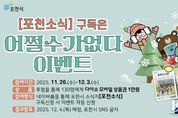 코리아타임뉴스 윤광희 기자 | 포천시는 시민과의 소통을 강화하기 위해 오는 12월 3일까지 시정 소식지 ‘포천소식’ 구독 이벤트를 진행한다. 이번 이벤트는 12월 3일까지 진행되며, 시정 소식지 ‘포천소식’을 구독하면 별도의 절차 없이 자동으로 이벤트에 응모된다. ‘포천소식’은 총 24면으로 구성된 월간지로, △기획 △시정소식 △문화 △일자리 △생활정보 등 포천의 주요 현안과 시민들에게 유용한 생활 밀착형 정보를 종합적으로 제공하고 있다. 이벤트 참여 방법은 포천시청 공식 누리소통망(SNS)에 게시된 이벤트 글에 ‘좋아요’와 댓글을 남기고, 네이버폼을 통해 소식지 구독을 신청하면 된다. 시는 참여자 중 추첨을 통해 총 130명에게 다이소 모바일상품권 1만 원을 제공할 예정이다. 포천시 관계자는 “이번 이벤트를 통해 다양한 생활정보와 시정 소식을 신속하게 전하는 ‘포천소식’을 더 많은 시민들에게 알릴 수 있기를 기대한다”며 “앞으로도 시민과의 소통을 확대하기 위한 다양한 노력을 지속하겠다”고 말했다.