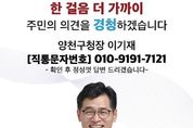 코리아타임뉴스 윤광희 기자 | 양천구가 소통 방식의 전환을 통해 구민의 목소리를 가감 없이 듣고, 손톱 밑 가시 같은 생활 속 작은 불편까지 살피고 해결하며 주민이 체감하는 변화를 만들어가고 있다. 문자 한 통에서 시작되는 소통… ‘구청장 직통 문자민원 서비스’ 직접소통·현장중시·혁신행정을 구정 운영의 핵심 가치로 내세워온 이기재 양천구청장은 2022년 8월 개인 휴대전화 번호를 공개하며 ‘구청장 직통 문자 민원 서비스’를 도입했다. 이 서비스는 구민이 구청장과 직접 소통할 수 있는 창구로, 복잡한 절차나 대기 없이 문자 한 통으로 생활 속 불편이나 건의 사항을 전달하고, 처리 결과를 안내받을 수 있다는 점에서 높은 주민 만족도를 얻고 있다. 양천구민은 파손된 보도블록, 꺼진 가로등, 통행을 방해하는 경계석, 쓰레기 무단투기 등 생활 속 불편 사항을 시간과 장소에 구애받지 않고 24시간 구청장에게 문자로 전송하고 있다. 접수된 문자는 구청장이 직접 확인한 뒤 관련 부서에 전달되며, 3일 이내 처리 부서 팀장이 결과를 안내하는 체계로 운영된다. 도입 이후 현재까지 접수된 민원은 총 1,1