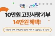 코리아타임뉴스 윤광희 기자 | 대전 중구는 연말을 맞아 부여군과 협업하여 지역화폐를 활용한 고향사랑기부제 상호 기부 이벤트를 진행한다고 24일 밝혔다. 이번 이벤트는 두 지자체가 가진 지역화폐 앱을 연계하여, 중구 지역화폐 ‘중구통(通)’ 앱 이용자가 부여군에 10만 원 이상 기부하면 중구통 1만 원을 지급하고, 부여군 지역화폐 굿뜨래페이 앱 이용자가 대전 중구에 10만 원 이상 기부하면 굿뜨래페이 1만 원을 지급한다. 기부자는 기본 혜택인 10만 원 전액 세액공제, 기부액의 30% 이내 답례품에 더해 지역화폐까지 받을 수 있어 총 14만 원 수준의 혜택을 받게 된다. 이번 상호 협업은 중구의 지자체 간 지역화폐 플랫폼 협력의 첫 사례로서, 도시 간 상생 모델 확대 및 지역 경제 활성화에 기여할 것으로 기대하고 있다. 특히 연말을 맞아, 기부 수요가 높아지는 시기에 지역화폐 지급 혜택이 더해져 고향사랑기부제 참여 확대 효과가 클 것으로 전망하고 있다. 김제선 중구청장은 “중구통 앱을 이용하는 주민뿐 아니라 타 지역 주민들도 기부에 참여해 세액공제·답례품·지역화폐 등 다양한 혜택을 함께 누리길 바란