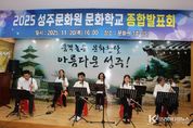 코리아타임뉴스 윤광희 기자 | 성주문화원(원장 이창길)은 지난 20일 성주문화원 3층 강당에서'2025 성주문화원 문화학교 종합발표회'를 성황리에 개최했다. 이번 발표회는 1년간 다양한 강좌에서 갈고닦은 실력을 선보이며 지역문화의 깊이를 더하는 화합의 장으로 마련됐다. 문화학교는 민요, 사물놀이, 한국무용, 해금, 다도, 아코디언 등 전통·예술·생활문화를 아우르는 15개 강좌로 구성되어 있으며, 특히 수강생의 대부분이 중·장년층과 어르신들로 구성돼 있음에도 불구하고, 배우고자 하는 열정과 참여 의지가 매우 높다는 점이 특징이다. 이들의 꾸준한 참여 덕분에 지역 문화교육 프로그램이 연중 활기를 잃지 않고 운영되고 있다. 이날 발표회에서는 ▲사물놀이 ▲민요·아리랑 ▲아코디언 ▲한국무용 ▲해금 연주 ▲다도 시연 등 다채로운 무대가 펼쳐졌으며, 서예반·서양화반·중국공필화반의 작품 전시도 열려 관객들의 큰 관심을 모았다. 이창길 성주문화원장은“문화학교는 어르신들의 배움의 열정이 가장 빛나는 공간”이라며 “함께 배우고 어울리는 모습이 성주 문화의 힘”이라고 말했다. 또한 내년에도 더욱 유익한 강좌로 군민들을 찾아가겠다고