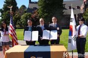 코리아타임뉴스 윤광희 기자 | 평택시의회는 22일, 미국 애니 라이트 스쿨에서 열린 협약식에 참석해 양해각서(MOU)를 체결하며, 평택국제학교 설립을 공식화했다. 이날 협약식에는 강정구 평택시의회 의장, 정장선 평택시장, 애니 라이트 스쿨 데이비드 오버튼 이사장, 제이크 과드놀라 교장을 비롯한 학교 관계자, 학부모, 학생, 지역 인사들이 함께했다. 협약식에 이어 열린 리셉션에는 메를린 스트릭랜드 연방 하원의원, 데니 헥 워싱턴주 부주지사, 라이언 멜로 피어스 카운티 행정수반 등 지역 주요 인사들이 참석해 지역 협력을 논의했다. 강정구 의장은 “오늘 양해각서(MOU) 체결을 계기로 평택국제학교 설립에 필요한 실무적 협의를 완료하고 교육환경 선진사례를 직접 확인함으로써 평택시의 글로벌 교육환경이 조속히 조성되기를 바란다”라고 하며 “시민들에게 실질적인 혜택이 돌아가도록 꼼꼼히 점검하고 정책에 반영하겠다”고 밝혔다.