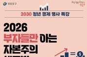 코리아타임뉴스 윤광희 기자 | 영등포구가 고금리와 불확실한 경제 환경 속에서 청년들의 경제적 자립 역량 강화를 위해 ‘2030 청년 경제 명사 특강’을 개최하고, 오는 2월 1일까지 청년 100명을 모집한다고 밝혔다. 특강은 2월 3일 오후 7시 30분부터 서울청년센터 영등포에서 열리며, 19~39세 청년을 대상으로 진행된다. 강연은 세종대학교 경제학과 교수이자 ‘모두의 금리’, ‘감정 경제학’ 등을 저술한 경제 전문가 조원경 교수가 맡아, ‘2026 부자들만 아는 자본주의 생존법’을 주제로 강연을 펼친다. 최근 금리 변동과 물가 상승, 투자 환경 변화 등으로 청년층의 경제적 고민이 깊어지는 가운데, 구는 급변하는 경제 흐름을 이해하고 합리적인 판단 역량을 기를 수 있도록 이번 특강을 마련했다. 강연에서는 2026 경제 흐름의 핵심과 자본주의 구조에 대한 이해를 중심으로, 복잡한 경제 개념을 청년의 눈높이에 맞춰 쉽게 풀어낼 예정이다. 특강은 사전 신청으로 무료로 참여할 수 있으며, 홍보 포스터에 안내된 정보무늬(QR코드)를 통해 접수하면 된다. 신청자가 많을 경우 추첨을 통해 참여자를 선정한다.