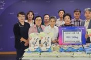 코리아타임뉴스 윤광희 기자 | 양주시 은현면이 지난 최근 은현면주민자치회 서예반에서 은현면 행정복지센터를 방문해 추석 명절을 맞아 취약계층 지원을 위해 백미 240kg(현물가액 약 90만 원 상당)을 기부했다고 밝혔다. 기부된 백미는 지난 6일 제2회 은현면 주민총회 및 프로그램 발표회에서 서예반 학생들이 직접 만든 부채를 판매하여 마련한 수익금으로 은현면에 거주하고 있는 독거노인, 중·장년, 장애인 등 1인 가구에 전달할 예정이다. 이구순 회장은 “추석 명절을 맞이하여 어려운 이웃들에게 따뜻한 위로를 전하고 싶은 회원들의 마음을 모아 준비했다”며, “도움이 필요한 이웃에게 전달해 달라”고 말했다. 이용배 면장은 “은현면에 따뜻한 관심과 애정을 보여주신 은현면주민자치회 서예반 회원분들께 감사를 드린다”며 “기부해 주신 백미는 도움이 필요한 가정에 잘 전달하겠다”고 전했다.