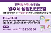 코리아타임뉴스 윤광희 기자 | 양주시가 시민들이 각종 재난 또는 안전사고로 상해를 입었을 경우 보험금을 청구할 수 있는 ‘생활안전보험’을 갱신 가입했다. 양주시에 주민등록이 되어있는 시민(등록외국인 포함)은 별도의 가입절차 없이 보험에 자동 가입되며, 사고 발생 시 보험금을 청구할 수 있다. 보장 항목으로는 ▲상해 사망(교통상해 제외) ▲자전거사고 사망 ▲자연재해상해 진단위로금(일사병, 열사병 포함) ▲사회재난상해 진단위로금(감염병 제외) ▲스쿨존 교통상해 부상치료비 ▲노인보호구역 교통상해 부상치료비 ▲상해 진단위로금(교통상해, 자연재해 및 사회재난 제외) ▲자전거사고 상해진단위로금 ▲가스사고 사망 ▲가스사고 후유장해 ▲폭발·화재·붕괴·산사태 사고 재난비용 등 총 11개 항목이다. 특히 올해부터는 보장 항목과 보장 금액이 확대됐다. 자전거 사고로 인한 상해 진단위로금은 기존 10만 원에서 진단 주수별로 최대 30만 원까지 상향됐으며, 가스사고 사망 및 후유장해 항목과 노인보호구역 교통상해 부상치료비 항목은 새롭게 신설됐다. 생활안전보험은 사고 발생일로부터 3년 이내에 신청해야 하며, 피해를 입은 시