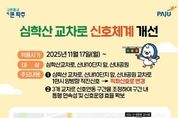 코리아타임뉴스 윤광희 기자 | 파주시는 운정신도시 내 상습 정체가 발생하던 심학산 교차로와 산내마을 10단지 사거리, 산내공원 교차로 등 3개소에 대해 신호체계 개선을 우선 추진해 11월 17일부터 현장 적용을 완료했다고 밝혔다. 이번 개선은 출근시간마다 교차로 내부에서 차량이 멈춰 모든 방향의 통행이 막히고, 좌회전 대기 공간이 부족해 자유로 방면 직진 흐름까지 지연되며 인근 단지 차량의 진출입도 어려웠던 문제를 해결하기 위한 조치다. 시는 이러한 구조적 정체를 해소하기 위해 기존 양방향 직진 위주로 운영되던 신호체계를 직·좌회전 병행 방식으로 바꾸고, 3개 교차로의 신호 연동을 재정비했다. 또한 구간 전체의 흐름이 끊기지 않도록 ‘스마트 교차로 시스템’을 활용해 신호체계를 최적화했다. 양성원 첨단도시정보과장은 “심학산 교차로는 운정신도시 주민들이 서울 등으로 이동하는 중요한 지점”이라며, “이번 신호체계 개선이 실질적인 소통 개선으로 이어질 수 있도록 지속적으로 점검하고 안정적인 운영을 위해 최선을 다하겠다”라고 밝혔다. 시는 적용 이후에도 교통 흐름, 보행 대기시간, 민원 등을 지속적으로 검토