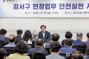 코리아타임뉴스 윤광희 기자 | 서울 강서구는 19일 구청 대회의실에서 ‘현장업무 안전 실천 서약식’을 열고 안전사고 없는 사업장 조성을 위한 실천 의지를 다졌다. 구는 지난 18일 청소 용역업체 종사자 사망 사고가 발생함에 따라 안전한 사업현장을 조성하겠다는 결연한 의지를 다지기 위해 마련됐다. 서약식에는 청소, 공원녹지, 도로, 하수, 공공시설 등 구의 현장 업무를 처리하는 용역업체 대표자 및 관계자 90여 명이 참석했다. 이날 진 구청장을 비롯한 참석자들은 서약서에 서명하며 산업재해 예방을 위한 실천 의지를 함께 다졌다. 서약서에는 ▲강서구민과 종사자의 생명 및 안전 최우선 ▲안전보건관리체계 구축으로 안전한 사업장 조성 ▲현장 안전수칙 준수 ▲안전문화 확산을 위한 전직원 안전교육 지속 실시 등 안전보건 의무이행을 위한 실천 항목이 담겼다. 서약식에 이어 현장에서 발생할 수 있는 사례를 중심으로 산업재해 예방 교육도 진행됐다. 진 구청장은 “안타까운 사고가 발생해 구청장으로서 너무나 참담한 마음이다. 구에서는 지금의 상황을 매우 엄중하고 비상하게 인식하고 있다”며 “유사사