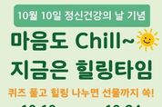 코리아타임뉴스 의료보건팀 | 부평구 부평정신건강복지센터는 세계 정신건강의 날(10월 10일)을 맞아 10일부터 24일까지 ‘온라인 힐링 캠페인’을 진행한다. 이번 캠페인은 누구나 정신건강의 중요성을 쉽고 재미있게 되새길 수 있도록 기획됐다. 참여자는 포스터 내 큐알(QR)코드를 통해 ▲세계 정신건강의 날 관련 퀴즈 풀기 ▲스트레스 해소 방법 공유 ▲‘나만의 소울OO(장소·노래·음식 등)’ 작성하기 등 설문에 응답할 수 있다. 센터는 오는 31일 설문에 참여한 선착순 200명에게 편의점 상품권(기프티콘)을 증정할 계획이다. 허휴정 센터장은 “이번 캠페인은 구민들이 일상 속에서 정신건강의 의미를 되새기고, 스스로를 돌보는 방법을 공유하는 기회가 될 것”이라며 “앞으로도 구민들의 정신건강 증진을 위해 다양한 사업을 이어가겠다”고 말했다.