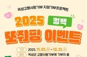코리아타임뉴스 전남취재본부 | 곡성군이 11월 1일부터 12월 31일까지 두 달간 곡성군 고향사랑기부제 “컴백 또줘핑~~”이벤트를 진행한다. “컴백 또줘핑” 이벤트는 곡성군이 지역 농·축협 및 농협중앙회 곡성군지부와 협력해 고향사랑기부제를 통해 지역 농산물 홍보와 지역문제 해결에 기여하기 위해 마련됐다. 곡성군 고향사랑기부 공식 인스타그램에 소개된 소액 기부자들의 따뜻한 사연과 지역문제에 대한 공감에 보답하고, 앞으로 기부에 참여할 분들에게도 감사의 마음을 전하고자 하는 취지를 담고 있다. 두 달 동안 10만 원 이상 기부자에 대해 매달 500명을 무작위 추첨해 1만 원 상당의 지역 쌀을 증정한다. 참여 방법은 고향사랑e음 또는 위기브 등 민간 플랫폼을 통해 곡성군에 기부하면 자동으로 응모되며, 당첨자는 개별 통보된다. 곡성군은 인구감소와 고령화 문제 해결을 위해 다양한 지역 맞춤형 사업을 발굴하고 있다. 현재 고향사랑e음을 통해 ‘곡성에 소아과를 선물하세요 시즌2’, ‘유기동물 보호센터 운영 지원’ 등의 지정기부사업을 추진하며 기부금을 모금 중이다. 군 관계자