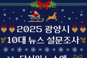 코리아타임뉴스 전남취재본부 | 광양시는 12월 3일부터 11일까지 ‘2025년 광양시를 빛낸 10대 뉴스’를 선정하기 위한 온라인 설문조사를 실시한다고 밝혔다. 시는 이번 설문을 통해 올해 추진한 주요 시책과 역점사업 가운데 광양시의 위상을 높이고 시민들에게 큰 감동을 준 뉴스 10건을 선정한다. 올해 10대 뉴스 후보는 ▲‘산업위기 선제대응지역’ 지정…미래 철강도시 도약의 전환점 마련 ▲전남 유일 4년 연속 인구증가 도시로 '우뚝' ▲‘전국 지방자치단체 일자리대상’ 11년 연속 수상 ▲광양 섬진강재첩 세계중요농업유산 등재…'K-푸드'로 도약 ▲광양 구봉산 관광단지 지정 및 조성계획 승인 등 17개 부서에서 제출한 뉴스 20건이다. 투표는 광양시청 누리집 설문조사와 ‘MY광양’ 앱의 ‘나의 메뉴’를 통해 참여할 수 있으며, 제시된 후보 항목 중 10개를 선택할 수 있다. 광양시는 온라인 시민투표와 공무원 투표 결과를 합산해 결과를 확정하고, 이를 12월 중순에 발표할 예정이다. 선정된 10대 뉴스는 연말 시청 로비에 전시해 시민들이 한 해의 시정 성과를 함께 돌아볼 수 있도록 할 계획이