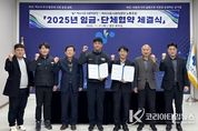 코리아타임뉴스 전남취재본부 | 여수시도시관리공단은 올해 9월 단체협약 체결에 이어, 지난 27일 공단 회의실에서 교섭대표 노동조합과 ‘2025년 임금협약’ 체결식을 개최했다. 이날 협약식은 이사장 및 노동조합 위원장 인사말, 협약서 서명, 기념 촬영 순으로 진행됐다. 임금협약의 주요 내용으로는 총인건비 3.0% 인상과 환경미화원 평가급 인상 등 총 7건의 합의 사항이 포함됐으며, 이 가운데 환경미화원 평가급 인상은 당해 연도 공단 경영평가 등급 결과와 연계하여 지급하도록 함으로써, 조직 전반의 책임성과 중장기적으로 성과 중심 조직운영 기반을 강화하는데 기여할 것으로 평가된다. 공단은 관련법에 따라 협약서를 고용노동청에 신고할 계획이며, 협약 내용은 2025년 1월 1일 부로 소급 적용된다. 송병구 이사장은 “이번 협약은 노사 간 신뢰와 소통의 결실”이라며, “앞으로도 현장 중심의 소통을 통해 노사가 같은 방향을 바라보는 공단의 내일을 준비해 나가겠다”라고 말했다. 정한샘 교섭대표 노동조합 위원장도 “끝까지 성실하게 논의해 준 사측에 감사드린다”며, “노사가 서로 신뢰하는 동반자로서 한