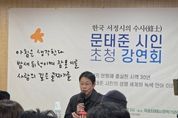 코리아타임뉴스 전남취재본부 | 전남 곡성군은 지난 11월 29일, 죽곡면에 소재한 조태일시문학기념관에서 열린 ‘한국 서정시의 수사(修士)’문태준 시인 초청 강연회가 성공적으로 마무리됐다고 밝혔다. 문태준 시인은 1994년『문예중앙』신인문학상을 통해 등단한 이후『가재미』, 『먼곳』, 『그늘의 발달』, 『우리들의 마지막 얼굴』 등 다수의 작품을 발표하며 소월시문학상, 미당문학상, 목월문학상 등 주요 문학상을 수상한 대한민국 대표 서정시인이다. 이번 강연회는‘생명 세계와 녹색 언어’를 주제로 펼쳐졌으며, 문태준 시인은 모든 존재가 서로 유기적으로 연결되어 있다는‘생명 세계’의 관점을 중심으로 현대 시가 지닌 생명성, 공존과 상생의 의미를 깊이 있게 풀어냈다. 특히 제주 애월에서 자연과 더불어 살아온 경험이 담긴 시 세계와 사유를 진솔하게 전해 참석자들의 큰 공감을 얻었다. 또한, 강연에 앞서 가수 서혁신의 공연이 펼쳐져 문학과 음악이 어우러진 더욱 풍성한 시간이 마련됐으며, 참여자들은 강연 후 이어진 질의응답과 사인회, 기념 촬영 등을 통해 시인과 직접 소통하며 문학적 감성을 깊이 있게 나누는 기회를 가