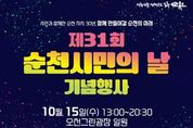 코리아타임뉴스 전남취재본부 | ‘더 큰 미래를 위한 삶의 쉼터, 치유도시 순천!’ 그 새로운 도약을 위한 순천시(시장 노관규)가 오는 15일 오천그린광장 일원에서 24개 읍면동 화합행사와 함께 ‘제31회 순천시민의 날’기념식을 개최한다. 이번 행사는 오후 1시부터 밤 8시 30분까지 28만 순천시민이 하나되어 글로벌 문화산업, 삶이 머무는 치유도시 메카로 발돋움한 일류 순천의 자부심을 높이는 장으로 어울한마당 큰 잔치가 성대하게 펼쳐진다. 이날 펼쳐지는 제31회 순천시민의 날 행사는 지역사회의 화합과 단결을 다짐하고, 순천의 발전을 기념하는 의미있는 시간으로 1부 행사와 2부 행사로 나눠 진행된다. 1부 행사는 오천그린광장 주차장 일원에서 오후 1시부터 오후 5시까지 ▲24개 읍면동 화합을 위한 장기자랑 ▲어린이 한마당 잔치 ▲버블매직쇼 ▲울려라! 도전 순천역사골든벨 ▲읍면동 먹거리부스 ▲순천하세요!(김수련, 양서영, 하숙자 가수의 공연) ▲체험부스 ▲푸짐한 경품 등이 마련돼 가족 단위 방문객에게 인기가 높을 것으로 기대된다. 특히 시민들이 함께 즐길 수 있는 ‘먹거리 부스’에서는 24개 읍면동이