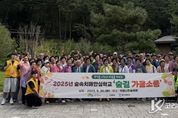 코리아타임뉴스 전남취재본부 | 전라남도 나주시는 치매취약층과 가족, 지역주민이 함께하는 치유와 화합의 장인 ‘숲속치매안심학교 숲길 가을소풍’을 지난달 30일 국립나주 숲체원에서 개최했다고 밝혔다. 이번 행사에는 치매 취약층 어르신들과 가족, 친구, 협력 기관 관계자 등 110여 명이 국립나주숲체원, 동신대학교, 자원봉사자 등이 협력해 만든 풍성한 프로그램에 참여했다. 참여자들은 국립나주 숲체원에서 주관하는 가을 숲속 음악회인 ‘우리숲페스타’ 공연 관람 및 동신대학교 운영 프로그램인 숲속 체험활동으로 오전 활동을 마무리했다. 오후에는 가을 숲길을 산책하며 한껏 가을을 만끽했고 공연 관람(코믹 댄스, 라인댄스, 스포츠 댄스)과 인지레크레이션 등 다채로운 프로그램을 체험했다. 특히 숲 체험과 공연, 참여형 프로그램을 통해 치매 예방과 더불어 치매 취약층 어르신들과 가족들이 함께 심신의 안정과 즐거움을 제공받았다. 나주시 관계자는 “이번 숲길 가을소풍이 치매에 취약한 어르신들과 그들의 가족들에게 소중한 추억과 휴식의 시간이 됐길 바란다”며 “앞으로도 치매 친화적 환경을 조성하기 위해 지역사회와