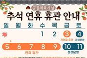 코리아타임뉴스 전남취재본부 | 여수시도시관리공단은 대명절 추석 연휴 기간(10월 5일~10월 9일) 동안 공단이 운영 중인 공공 체육시설을 휴관한다고 밝혔다. 휴관 대상은 △진남수영장 △망마국민체육센터 △장애인국민체육센터이며, 정상 운영은 10월 10일(금)부터 재개된다. 다만, 연휴 전 개천절인 10월 3일(금)에는 망마국민체육센터 다목적체육관만 운영하며, 10월 4일(토)에는 진남수영장과 망마국민체육센터가 정상 운영된다. 공단은 추석 연휴 기간에도 시설물 안전관리와 긴급상황 대응을 위해 비상근무 체계를 가동해 시민과 관광객들이 안심할 수 있도록 최선을 다한다는 방침이다. 여수시도시관리공단 이사장은 “민족 최대 명절인 추석을 맞아 가족과 함께 안전하고 따뜻한 시간을 보내시길 바란다”며, “연휴 동안에도 공단은 시민의 안전을 최우선으로 하고, 휴관 이후 더욱 쾌적한 환경에서 체육시설을 이용할 수 있도록 최선을 다하겠다”고 말했다. 시설별 세부 운영 일정은 여수시도시관리공단 공공 체육시설 전용 홈페이지에서 확인할 수 있다.