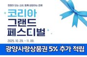 코리아타임뉴스 전남취재본부 | 광양시는 전국 단위 소비진작 행사인 ‘코리아 그랜드 페스티벌(Korea Grand Festival)’ 기간(2025. 10. 29.~11. 9.) 동안 광양사랑상품권 할인율을 한시적으로 18%로 상향한다고 밝혔다. ‘코리아 그랜드 페스티벌’은 국무조정실, 기획재정부, 행정안전부, 산업통상자원부와 행정안전부, 문화체육관광부 등 관계 부처가 공동으로 추진하는 국가대표 소비축제다. 행사 기간에는 △지역사랑상품권 및 디지털온누리상품권 특별할인 △상생소비복권 (20억 원 규모) 신규 시행 △농·축·수산물·생필품 특별할인 △숙박쿠폰 발급 및 문화유산 무료 개방 등 국민 누구나 참여할 수 있는 다양한 소비 혜택이 제공된다. 이 기간 광양시는 총 40억 원 규모의 광양사랑상품권을 발행하며, 기본 13% 후(後) 캐시백에 5%를 추가해 총 18% 혜택(월 최대 12만 6천 원 적립)을 제공한다. 단, 예산 소진 시 조기 종료될 수 있으며 행사 종료 후에는 기존 13% 할인율로 조정된다. 시는 이번 특별할인을 통해 시민들이 실질적인 소비 혜택을 누리고, 지역 내 자금의 선순