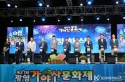 코리아타임뉴스 전남취재본부 | 광양시는 9월 26일부터 28일까지 3일간 광영동 스포츠 콤플렉스 일원에서 열린 제21회 광영가야산문화제가 지역 주민과 관광객 6천여 명이 함께한 가운데 성황리에 마무리됐다고 밝혔다. 올해 문화제는 ‘함께 즐기는 전통과 현대의 만남’을 주제로 수준 높은 공연과 참여형 프로그램이 어우러지며, 지역 대표 문화축제로서의 위상을 다시 한번 입증했다. 첫날인 26일에는 영화 택시운전사 무료 상영과 전야제 공연으로 서막을 열어 주민과 관람객들에게 뜻깊은 시간을 선사했다. 이어 27일에는 식전공연으로 난타 공연과 광양시립국악단의 무대가 펼쳐지며 본격적인 축제 분위기를 고조시켰다. 같은 날 저녁 7시부터 열린 개막식에는 약 2천여 명이 운집한 가운데 화려한 불꽃놀이가 가을 밤하늘을 수놓았고, 가수 황민우·황민호 형제가 출연한 축하공연은 관객들의 뜨거운 호응을 이끌어냈다. 축제 마지막 날인 28일에는 청소년 국악 페스티벌과 난타 공연, 광영동 주민자치 작품발표회가 이어지며 지역 주민들의 재능과 열정을 뽐내는 장으로 마무리됐다. 김윤선 광영가야산문화제 추진위원장