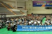 코리아타임뉴스 전남취재본부 | 전라남도 나주시가 장애인과 비장애인이 함께 어울리며 소통하는 화합의 장 ‘제12회 나주시 장애인 한마당 큰잔치’를 성황리에 개최했다. 나주시는 최근 종합스포츠파크 다목적체육관에서 나주장애인연합회(회장 송종운) 주관으로 행사를 열고 장애인과 비장애인, 자원봉사자 등 800여 명이 참여한 가운데 기념식, 축하공연, 장기자랑까지 총 2부 순서로 진행했다고 25일 밝혔다. 이번 행사는 모범장애인과 장애인복지 유공자 11명에 대한 표창 수여와 더불어 다채로운 공연과 체험 프로그램으로 의미를 더했다. 기념식은 시각장애인협회 나주시지회 이도전 지회장의 개회선언을 시작으로 모범장애인 및 장애인복지 유공자 표창, 내외빈 축사 등으로 이어졌다. 식전 공연에서는 나주시장애인주간이용센터와 성산원(장애인거주시설) 이용인들이 무대를 꾸며 즐거운 분위기를 더했다. 또한 행사장 부대 프로그램으로 키오스크 체험, 인생사진 촬영, 혈관나이 측정, 원예체험(전남장애인복지관), 메이크업 체험(아띠공방), 장애인 보장구 무상수리(휠앤스) 등이 운영돼 참가자들의 큰 호응을 얻었다.