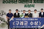 코리아타임뉴스 전남취재본부 | 전남 구례군은 9월 23일 서울 백범김구기념관에서 열린 ‘2025년 대한민국 자치발전 대상’ 시상식에서 기초자치단체 부문 대상을 수상하는 영예를 안았다. 전남 지자체 중에서는 구례군이 유일하게 수상했다. 이번 시상식은 (사)한국자치발전연구원과 한국지방자치학회가 공동 주최·주관했으며, 문정복, 박민규, 임종득 국회의원을 비롯해 전국 각지의 자치단체장과 의회 의장, 수상자 등이 참석해 성황을 이뤘다. 구례군은 이번 수상을 통해 미래 성장동력 확보와 지역경제 기반 강화에 크게 기여한 다양한 성과를 인정받았다. 총사업비 약 1조 4천억 원 규모의 양수발전소 유치를 성공시키며 에너지 산업 중심지로 도약할 기반을 마련했으며, 전국 최초로 ‘흙 살리기 운동’을 선도해 기후변화 대응과 탄소중립 실현에 앞장섰다. 또한, ‘섬진강권 통합관광벨트’를 비롯한 초광역 관광개발사업을 추진하여 지역 내 새로운 관광지 발굴과 기존 관광지 활성화에 주력, ‘관광 제2르네상스’ 실현에 박차를 가하고 있다. 이러한 정책 효과로 구례군은 인구감소 위기 속에서도 2년 연속 순전입 인구 증가를 달성하며 인구