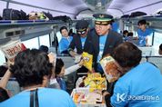 코리아타임뉴스 전남취재본부 | 장흥군은 24일 운행된‘정남진 장흥 통일열차’에서 추억의 기차 콘셉트의 프로그램을 운영해 참가자들에게 특별한 추억을 선사했다고 밝혔다. 이번 프로그램은 철원 평화안보 현장을 견학하기 위한 통일열차 속, 기차 안에서 함께 소통하고 즐기는 특별한 시간을 위해 마련됐다. 열차 내에서는 과거 무궁화호의 카트 서비스를 재현한 간식 판매 이벤트가 진행됐다. 김성 장흥군수와 김재승 군의장이 옛날 역무원 복장을 하고 객차 사이를 오가며 탄산음료, 오징어, 땅콩 등 추억의 간식을 직접 판매해 참가자들의 호응을 받았다. 또한 객차 내 방송 시스템을 활용해 역무원 안내 방송을 패러디한 재치 있는 멘트를 선보이며 열차 분위기를 한층 더 밝게 만들었다. “잠시 후 등장하는 간식 카트는 여러분의 추억과 함께 달리고 있습니다. 통일로 향하는 열차에 탑승하신 것을 환영합니다” 등 유쾌한 멘트가 흘러나올 때마다 객차마다 웃음과 박수가 터져 나왔다. 한 참가자는 “철원으로 가는 길이 정말 즐거웠다. 진짜 옛날 기차를 타고 있는 기분이었다”며 소감을 전했다. 특히