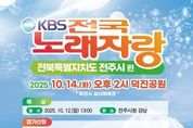 코리아타임뉴스 전북취재본부 | 가을이 내려앉은 전주덕진공원에서 대한민국 국민 프로그램인 ‘KBS 전국노래자랑’이 펼쳐진다. 전주시는 오는 14일 오후 2시, 덕진공원 특설무대에서 시민과 함께하는 전국민적 노래 경연 프로그램인 ‘KBS 전국노래자랑 전주시편’이 진행된다고 10일 밝혔다. 이번 녹화에는 지난 9월 선착순으로 모집한 300팀의 예심 참가자들 중 치열한 경쟁을 거쳐 본선 진출에 성공한 참가자들이 무대에 올라 각자의 재능과 열정을 선보이게 된다. 특히 이번 전주시편 예심에는 접수가 시작된 지 이틀 만에 선착순 300팀이 마감될 정도로 전주시민들의 높은 관심과 참여 열기를 나타내기도 했다. 이날 본선 녹화 현장에는 2000여 명의 시민 관람객이 함께할 것으로 예상되며, 세대를 아우르는 흥과 끼가 어우러진 대규모 시민 축제의 장으로 꾸며질 예정이다. 시는 이번 행사가 시민 화합은 물론, 전주의 문화·관광적인 매력을 전국적으로 알리는 계기가 될 것으로 기대하고 있다. 전주시 관계자는 “전국노래자랑은 대한민국을 대표하는 국민 참여형 프로그램으로, 시민 누구나 주인공이 될