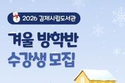 코리아타임뉴스 전북취재본부 | 김제시립도서관은 겨울방학을 맞아 관내 초등학생을 대상으로 겨울 독서교실과 겨울 방학반 프로그램을 오는 2026년 1월 12일부터 2월 13일까지 운영한다고 밝혔다 이번 프로그램은 방학 기간 동안 전문 강사 선생님들과 함께 다양한 주제를 직접 체험해 볼 수 있도록 구성됐다. 겨울 독서교실은 2026년 1월 12일 월요일부터 1월 16일 금요일까지 5일간 오전 9시부터 12시까지 시립도서관 5층 배움터 3에서 진행된다. “나는 누구? 여긴 어디? 난, 충분히 멋져!라는 주제로 진행되며 참가대상은 관내 초등학교 2학년부터 5학년까지이며, 총 25명을 홈페이지를 통해 선착순 모집한다. 또한 추가로 예비 인원 5명을 후보로 선정할 예정이다. 겨울 방학반은 2026년 1월 19일 월요일부터 2월 13일 금요일까지 오전 9시 30분부터 11시 30분까지 시립도서관에서 진행되며“동화요리”, “우리집 소품 만들기”, “창의 미술”, “3D펜”등 10개 강좌로 진행된다. 참가대상은 관내 초등학교 1학년부터 6학년까지이며 과목당 10명 정도로 홈페이지를 통해 선착