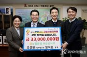 코리아타임뉴스 전북취재본부 | 부안군은 NH농협은행 부안군지부(지부장 조상완)와 임직원 일동이 고향사랑기부금 3300만원을 기탁했다고 밝혔다. 이번 기부는 고향사랑기부제 시행 첫해부터 참여해 온 부안군지부가 해마다 기부 규모를 꾸준히 늘려온 가운데 이뤄진 것으로 지역 금융기관으로서 지역과의 상생 의지를 이어가고 있다는 점에서 의미가 크다. 이날 기탁식에는 조상완 부안군지부장을 비롯해 김춘호 농촌지원단장, 이미숙 부안군청 출장소장이 함께 참석했다. 참석자들은 고향사랑기부제가 지역 발전과 주민 삶의 질 향상에 기여하는 제도로 자리 잡고 있다는 데 공감하며 지속적인 참여와 협력을 약속했다. 조상완 지부장은 “지역과 함께 성장해 온 금융기관으로서 고향사랑기부는 자연스러운 실천이라고 생각한다”며 “임직원 모두가 한마음으로 참여한 이번 기부가 부안 발전에 보탬이 되길 바란다”고 말했다. 권익현 부안군수는 “제도 시행 초기부터 꾸준히 참여하며 기부 규모를 확대해 주신 부안군지부 임직원께 깊이 감사드린다”며 “기부금은 주민이 체감할 수 있는 복지와 지역 활력 사업에 소중히 활용하겠다”고 강조했다.