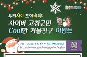 코리아타임뉴스 전북취재본부 | 고창군이 ‘사이버 고창군민’ 신규가입자를 대상으로 12월14일까지 쿨(Cool)한 겨울친구 이벤트를 진행한다고 밝혔다. 연말을 맞아 마련된 이번 이벤트는 사이버고창군민 제도를 널리 홍보하고, 고창군과 다양한 방식으로 연결될 수 있는 관계인구 확대를 목표로 하고 있다. 이벤트 기간 동안 신규 가입자 중 총 100명을 무작위 추첨해 5명에게는 고창마켓 3만원 상품권, 95명에게는 고창마켓 1만원 상품권을 제공할 예정이다. 특히 가입만 해도 자동으로 이벤트 응모가 완료되는 방식이라 누구나 쉽고 간편하게 참여가 가능하다. 사이버고창군민이 되면 고창군 내 50개소의 가맹점에서 일정 금액의 이용료 할인 혜택을 받을 수 있을 뿐 아니라, 군정소식 제공, 지역 정보 교류 등 다양한 혜택도 함께 누릴 수 있다. 심덕섭 고창군수는 “이번 이벤트는 사이버 고창군민 가입을 통해 고창군의 다양한 소식과 혜택을 접하게 되면 자연스럽게 지역 방문으로 이어지고, 나아가 군의 관계인구를 확대하는 데 큰 도움이 될 것”이라고 전했다. 이어 “앞으로도 온라인과 오프라인을 연계한