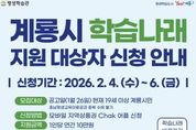 코리아타임뉴스 충남취재본부 | 충남 계룡시는 2026년 학습나래 사업을 본격 시작한다고 밝혔다. 올해 학습나래 사업은 공고일(1월 26일) 현재 19세 이상 계룡시민을 대상으로, 1인당 연간 10만 원의 평생학습 지원금을 총 1,100명에게 지급해 시민들의 자기계발과 역량 강화를 지원할 예정이다. 지원 대상자 신청은 오는 2월 4일부터 2월 6일까지 모바일 지역사랑상품권 Chak 어플을 통해 접수하며, 전산 추첨으로 대상자를 선정 3월 초 모바일 계룡사랑상품권(정책수당)으로 지급할 계획이다. 지급된 학습나래 지원금은 오는 10월 31일까지 관내 75개소의 학습기지에서 사용할 수 있다 특히 2026년 학습나래 사업은 몇 가지 변경 사항이 있어 주의가 필요하다. 먼저, 선정자 본인이 1개월 이내에 선정 취소를 가능하게 하고, 사업기간 내 전액 미사용자에 대해서는 다음 2년간 선정에서 배제하여 미사용으로 회수되는 일을 최소화하고자 했다. 또한, 부정 사용자에 대한 제재로 다음 3년간 선정 배제를 명시하여 학습나래가 취지에 맞게 잘 쓰여질 수 있도록 할 예정이다. 시는