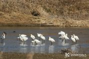 코리아타임뉴스 충남취재본부 | 하천에서 먹이 활동을 할 때 물속에 ‘넓적한 주걱 모양의 부리를 넣고 휘휘 젓는다’고 해서 저어새라고 이름이 붙여진 노랑부리저어새가 이제 연산천에서의 월동이 정착된 것으로 보인다. 논산의 대표적인 생태하천인 연산천에서 노랑부리저어새 (천연기념물 205-2호/ 멸종 위기종 2급)가 6년째 발견되고 있는 것이다. 공익단체 늘푸른나무의 김권중 운영위원 (광석마을학교장)에 의해 발견된 노랑부리저어새는 약 20여 마리로 그동안의 월동개체수에 비해 가장 많은 숫자이며 저어새(천연기념물 제205호)도 한마리 보인다. 수년째 김권중 운영위원과 연산천과 노성천의 생태조사를 진행하고 있는 늘푸른나무 권선학 대표는 “노랑부리저어새 월동개체수가 이렇게 많은 이유는 번식을 통해 가족단위가 늘어난 것으로 추정된다.”고 전했다. 노랑부리저어새는 황새목 저어새과의 매우 희귀한 겨울철새로 몸 전체가 흰색이고, 암수의 형태가 같으며 다리는 검은색, 부리는 평평한 주걱 모양으로 끝부분이 노란색으로 서해의 무인도에서 번식하고 있는 것으로 알려져 있다.
