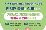 코리아타임뉴스 충남취재본부 | 금산군은 10월 31일까지 동물등록 자진신고 기간을 운영한다. 동물등록제는 동물보호법에 따라 유실·유기 동물의 발생을 예방하고 성숙한 반려동물 문화 정착을 위해 시행 중인 제도다. 가정이나 그 외 장소에서 기르는 2개월령 이상의 개는 반드시 관할 지자체에 동물등록을 해야 하며 소유자 정보나 등록 동물에 대한 변경 사항이 발생할 경우 30일 이내에 변경 신고를 해야 한다. 단, 대행 동물병원이 없는 금산읍 외 지역은 동물보호법에 따라 동물등록 의무에서 제외된다. 자진신고 기간 내에 등록 또는 변경 신고를 완료하면 과태료가 면제되지만 이를 이행하지 않으면 최대 100만 원 이하의 과태료가 부과될 수 있다. 동물등록은 반려동물과 함께 관내 동물등록 대행 동물병원을 방문해 진행할 수 있다. 금산군의 등록 대행 동물병원은 우신동물병원, 하나동물병원, 제일동물병원 3곳이다. 등록 수수료는 내장형 1만 원이며 등록칩 가격과 시술비용은 병원별로 다를 수 있다. 이 외에도 군은 생후 5개월령 이상의 실외사육견(마당개)을 대상으로 중성화