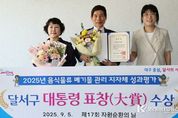 코리아타임뉴스 한장선 객원기자 | 대구 달서구는 지난 5일 김제실내체육관에서 열린 제17회 자원순환의 날 기념식에서 환경부 주최 ‘2025년 음식물류 폐기물 관리 지자체 성과평가’ 전국 1위로 선정돼 대통령 표창을 받았다. 전국 229개 지자체가 참여한 이번 평가에서 달서구는 체계적인 감량 인프라 구축, 주민 참여 확대, 민·관 협업 캠페인 등 전 분야에서 높은 점수를 받았다. 환경부와 한국폐기물협회, 민간 심사위원 등 전문가로 구성된 평가단은 지난해(2024년) 실적을 기준으로 진행했다. 달서구는 음식물류 폐기물(이하 ‘음식물폐기물’) 발생 억제와 감량 성과에서 우수한 사례로 평가를 받았다. 구는 2012년부터 공동주택 197개 단지에 RFID 종량기 1,628대를 설치하고, 노후 장비 573대를 교체해 시스템 효율성을 높였다. 단지별 성과에 따라 인센티브 제공과 맞춤형 컨설팅을 병행해 주민 참여를 제도화했다. 그 결과 2024년 음식물폐기물 발생량은 감량목표 대비 4.8%p를 초과 달성했다. 정책 확산을 위해 (사)한국외식업중앙회 대구 달서구지부를 시작으로