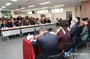 코리아타임뉴스 경남취재본부 | 15일 의령읍 출발…13개 읍·면 순회 소통 의령군은 군민과 함께 군정 운영 방향과 지역 현안을 공유하기 위해 ‘2026년 군민과의 대화’를 15일부터 23일까지 13개 읍·면을 순회하며 개최한다. 군민과의 대화는 군정 주요 정책과 의령의 미래 비전을 설명하고, 지역 주민들의 생생한 의견을 직접 듣기 위한 소통의 장으로 마련됐다. 첫 일정인 15일 의령읍사무소 3층 회의실에서 열린 군민과의 대화에서는 위험 수목 신속 처리, 전선 지중화 사업 확대, 도서관 문화프로그램 개설, 서천발원지 둘레길 조성 및 관리 방안 등 생활과 밀접한 다양한 건의 사항이 제시됐다. 참석자들은 일상 속 불편과 지역 발전을 위한 의견을 자유롭게 제안했으며, 군은 건의 내용에 대해 현장에서 설명하고 향후 검토 방향을 공유하며 소통의 시간을 가졌다. 오태완 군수는 “주민 의견을 바탕으로 정책의 타당성과 지속성을 높이겠다”며 “군민과의 대화를 통해 군정 방향을 점검하겠다”고 말했다. 이번 군민과의 대화 기간에는 부림일반산업단지와 지정면 기초생활거점 조성사업 등 주요 현안을 직