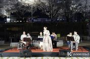 코리아타임뉴스 경북취재본부 | 제64회 경북도민체육대회 개최를 기념해 예천군이 마련한 ‘개심사지 벚꽃 버스킹’이 4월 4일과 5일 이틀간 예천읍 개심사지 오층석탑 일원에서 성황리에 열렸다. 만개한 벚꽃이 조명을 받아 밝게 빛나는 야경 속에서 오후 7시부터 8시까지 진행된 이번 공연에는 연일 수백 명의 주민과 관광객이 몰렸다. 관람객들은 빈백 의자에 앉아 봄 저녁의 여유를 즐기며 공연을 감상했다. 행사장에는 대형 달 조형물과 토끼 조형물이 설치되고, 잔디밭을 따라 물결처럼 이어진 전구 스트링 조명이 공간을 은은하게 밝히며 개심사지 일대를 감성적인 분위기로 연출했다. 이번 공연에는 국내 1세대 퓨전 국악 밴드 ‘프로젝트 락’이 출연해 해금·피리·대금 등 전통 국악기와 밴드 사운드를 결합한 독창적인 무대를 선보였다. 첫날 ‘화연(花宴), 봄을 열다’ 공연은 한복을 입은 보컬의 판소리와 현대적 가창이 벚꽃 야경과 어우러져 잔잔한 감동을 전했고, 둘째 날 ‘풍류난장(風流亂場), 흥을 깨우다’ 무대는 관객 참여와 즉흥 연주를 통해 활기찬 분위기를 이끌어냈다. 행사장에는 도민체전을 찾은 타 시·군