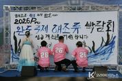 코리아타임뉴스 노승선 기자 | 완도군은 ‘청정 완도 가을 섬 여행’ 행사 마지막 날인 10월 26일 해변공원에서 ‘2026 Pre 완도국제해조류박람회’ 성공 개최를 기원하는 퍼포먼스를 진행했다. 2026 Pre완도국제해조류박람회는 완도의 대표 해양자원인 해조류와 전복을 주제로 2026년 5월 2일부터 7일까지 6일간 해변공원 일원에서 열리며 국제 심포지엄, 수출 상담회 등 다양한 프로그램이 진행될 예정이다. 이날 보여준 퍼포먼스는 ‘해조류, 전복하면 완도여라! 2026 Pre 완도국제해조류박람회 성공 개최를 기원합니다!’라는 문구를 캘리그라피로 힘차게 써 내려갔다. 이범우 완도부군수와 지민, 최정욱 완도군의회 의원, 어린이가 무대에 올라 응원의 글을 추가해 박람회 성공 개최를 기원하는 메시지가 풍성하게 완성됐다. 퍼포먼스 종료 후 박람회 추진위원회 위원들과 내빈들은 무대에 올라 박람회 성공 개최를 기원하는 구호를 함께 힘차게 외쳤다. 군 관계자는 “모두가 한마음으로 완도국제해조류박람회가 성공적으로 개최되길 기원하는 시간이어서 뜻깊었다”면서 “해조류의 가치와 완도의 위상을 드높일 수 있도