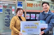 코리아타임뉴스 부산취재본부 | 부산 동구종합사회복지관(관장 김창근)은 지난 15일 부산 동구 수정동에 위치한 식당 원조콩나물비빔밥(이희숙 대표)에서 성금 100만원을 후원했다고 밝혔다. 해당 성금은 추운 겨울 어려움을 겪고 있는 어려운 이웃들이 따뜻한 겨울을 날 수 있도록 사용될 예정이다. 이희숙 대표는 이외에도 동구종합사회복지관 이용자들을 위한 외식문화 체험활동에 협조하고, 매년 연말에 100만 원씩 기부를 이어가고 있다. 특히 지난 2023년에는 30년 이상 한 끼 식사를 통해 이웃사랑을 실천한 공로를 인정받아 ‘제39회 자랑스러운 시민상 영예의 대상’을 수상한 바 있다. 이희숙 대표는 “지역 주민분들이 식사하러 가게를 많이 찾아주신 만큼 어려운 이웃들에게 따뜻한 마음을 되돌려 드리고 싶다는 생각이 든다”며 “앞으로도 따뜻한 나눔을 계속해서 이어나가겠다”고 전했다.