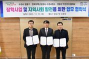 코리아타임뉴스 사회팀 | 수원특례시 영통구는 지난 18일, 한국지역난방공사 수원지사, 구 주민자치협의회와 상호 협력을 바탕으로 지역 미래인재 육성을 위한 장학사업 협약을 체결했다. 이번 협약은 지역 내 학업 의지가 높으며 경제적 지원이 필요한 학생들을 지원하고, 주민과 기관이 함께 성장하는 지역 공동체의 기반을 마련하기 위해 추진됐다. 한편 한국지역난방공사는 내년도 장학사업이 보다 내실 있게 추진될 수 있도록 협약 체결과 함께 장학금 500만 원을 기탁했다. 해당 장학금은 사회복지공동모금회를 통해 관내 학생 가운데 도움이 필요한 대상자를 절차에 따라 선정한 뒤 전달될 예정이다. 한국지역난방공사 김진만 수원지사장은 “지역과 상생하는 공기업으로서 사회적 책임을 꾸준히 실천하고자 한다”며 “이번 장학금이 학생들의 학업과 미래 설계에 작은 힘이 되기를 바란다”고 말했다. 또한 장대현 구 주민자치협의회 회장은 “주민이 중심이 되어 지역 인재를 응원하고 지역 빌전에 기여할 수 있어 뜻깊다”며 “앞으로도 책임감을 가지고 장학사업 및 다양한 협력 사업을 성실히 수행하겠다”고 전했다. 장수석 영통구청장