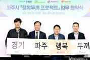 코리아타임뉴스 윤광희 기자 | 파주시는 ㈔딜로이트한마음나눔, 행복나래㈜, 행복도시락 사회적협동조합과 함께 결식 우려가 있는 외국인 노동자 자녀 지원을 위한 ‘행복두끼 프로젝트’업무협약을 체결했다고 밝혔다. 이날 협약식에는 최병갑 파주시 부시장을 비롯해 ㈔딜로이트한마음나눔 유병문 상임이사, 행복나래㈜ 조민영 본부장, 행복도시락 사회적협동조합 최준 사무국장 등 관계자들이 참석해, 아동복지 향상을 위한 상호 협력체계를 구축하기로 뜻을 모았다. 이번 협약을 통해 파주시는 결식 우려 아동을 추천하고, ㈔딜로이트한마음나눔, 행복나래㈜와 행복도시락 사회적협동조합은 해당 아동을 대상으로 도시락을 후원·제작·배송하는 역할을 맡게 된다. 이번 협약을 계기로 파주시 내 결식이 우려되는 외국인 노동자 자녀 40명이 지원을 받게 됐으며, ‘아프리카 10개국 이주민 노동자 공동체’는 해당 아동들이 정기적으로 도시락을 제공받게 된 것에 대해 깊은 감사의 마음을 전했다. 최병갑 파주시 부시장은 “파주시가 행복두끼 프로젝트 사업에 참여하게 되어 뜻깊다”라며 “앞으로도 지역사회 내 어려움을 겪는 아동들에게 희망을 전하는 따뜻한 사