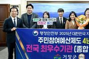 코리아타임뉴스 오영주 기자 | 거창군은 지난 16일 정부세종청사에서 행정안전부가 주최하는 2025년 대한민국 지방재정대상 시상식에서 주민참여예산제도 운영 4년 연속 전국 최우수기관으로 선정되어 장관 기관표창과 함께 재정 인센티브 5천만 원을 받았다. 행정안전부는 매년 전국 지방자치단체 243개를 대상으로 주민참여예산제도 성과평가를 통해 지자체의 건전한 재정 운용과 지방재정 민주성책임성투명성 평가해 광역·시· 군·구 별로 각 1개씩 총 4개 기관만을 최우수기관으로 선정하고 있다. 거창군은 2018년, 2021년 우수기관에 선정된 데 이어, 2022년부터 2025년까지 4년 연속 최우수기관으로 선정되는 성과를 거뒀으며, 이는 전국 군 단위 82개 지자체 가운데 최상위 수준의 운영 역량을 입증한 것이다. 특히 올해는 ‘공감과 성장-진화하는 거창형 주민참여예산’이라는 슬로건 아래, △찾아가는 주민 예산학교 미래세대(초 · 중 · 고 · 대학생) 확대 운영으로 미래세대의 참여 환경 조성 △‘모방과 경연’을 주제로 거창군만의 차별화된 제안사업 공모유형을 다양화해 창의적 행정문화 확산 △회의 진행보조자(퍼실리테이터)를
