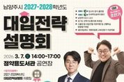 코리아타임뉴스 경기취재본부 | 남양주시는 오는 3월 7일 정약용도서관 공연장에서 관내 고등학생과 학부모를 대상으로 ‘남양주시 2027~2028학년도 대입전략설명회’를 열고, 이에 앞서 2월 9일부터 참가 신청 접수를 진행한다. 이번 설명회는 새 학년이 시작되는 시기에 맞춰 변화하는 대학입시 환경에 대한 최신 정보를 제공하고, 학생과 학부모가 새로운 입시 제도에 신속하고 안정적으로 대응할 수 있도록 지원하고자 마련됐다. 설명회에는 EBS 입시대표강사 김진석, EBS 입시전문가 조만기, 관내 고등학교를 졸업한 대학생 멘토가 참여한다. 주요 내용은 △2027학년도 대입 핵심 가이드 △2028학년도 달라지는 입시 제도 이해 △지역의사제 주요 내용 안내 △대학생 선배가 전하는 대입 준비 경험 등으로 구성됐다. 특히 이번 설명회에서는 2027학년도부터 시행되는 지역의사제 관련 제도의 취지와 전형 구조를 함께 안내한다. 남양주시가 지역의사제 적용 권역에 포함됨에 따라 관내 학생들의 의대 진학 기회 확대와 함께 남양주시의 교육 경쟁력도 한층 강화될 것으로 기대된다. 아울러 우수 인재의 지역 정착과 학군 경쟁력 강